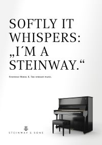 Steinway & Sons baut ganz unzweifelhaft die besten Pianos der Welt. Die Marke hat so viel Substanz wie kaum eine andere. Aber wie spricht sie? Und auf welchen Kanälen erreicht man Menschen, die einen Steinway kaufen können? Unsere Kampagnen haben für Steinway in Deutschland, Frankreich, Großbritannien und den USA ein paar neue Töne angeschlagen.